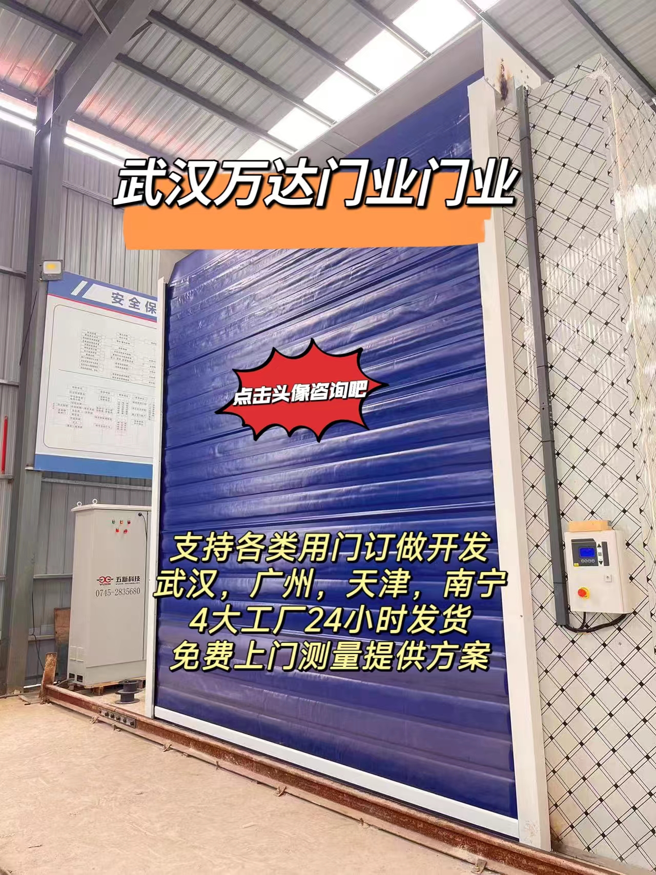 1、快速双层保温道孚窑门,自动感应道孚窑门,输送线道孚卷帘门快速双层保温道孚窑门 武汉万达门业全国制作安装 13871127817